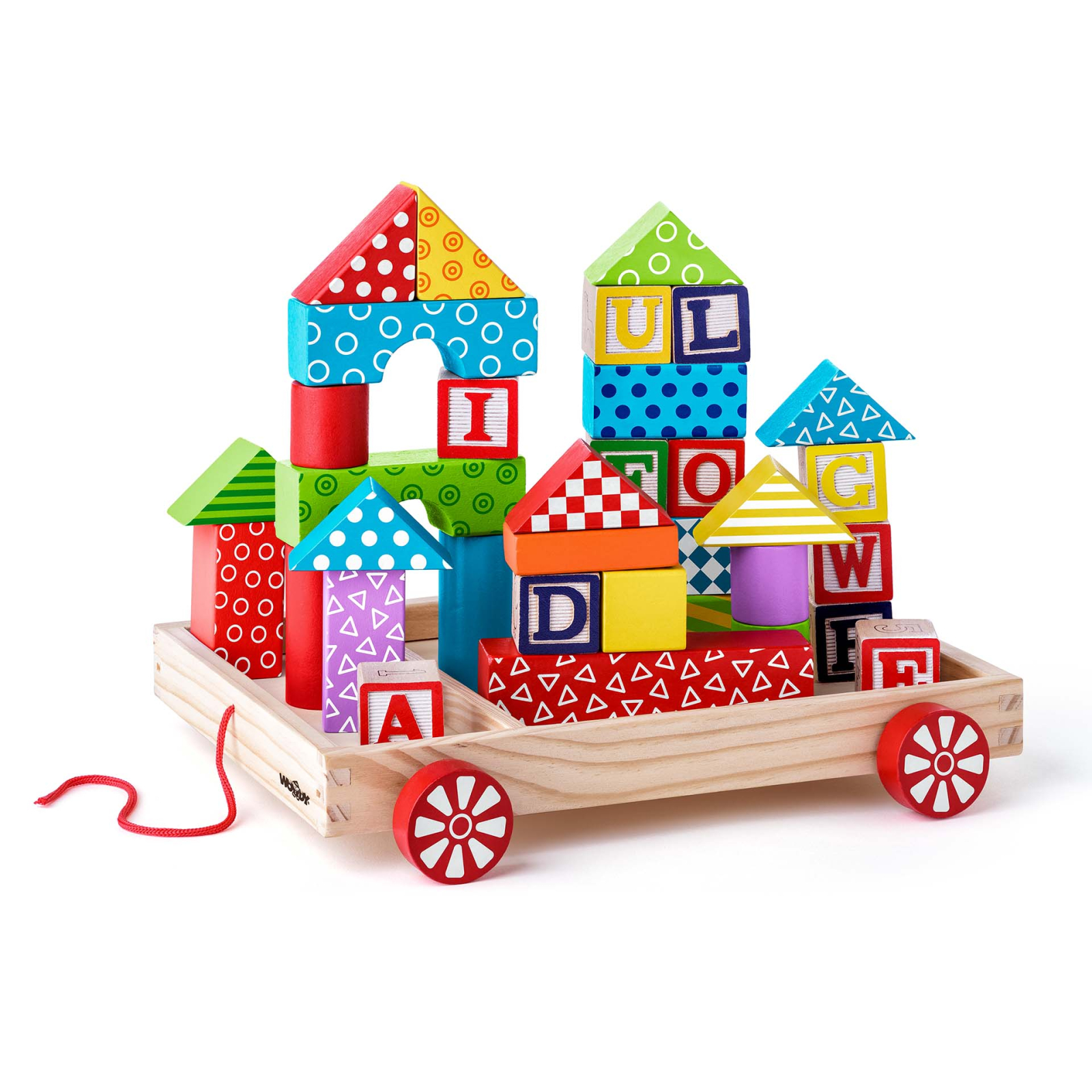Jucarie din lemn - Caruciori cu cuburi, litere si stampile (35 piese)
